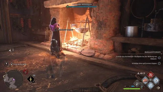 Через некоторое время вы попадете в лагерь, где происходит бой. Затем осмотрите палатку Aschwinderinnen. Внутри палатки в десять раз больше, чем снаружи, и она до отказа заполнена врагами. Однако первых из них можно легко победить, если стать невидимым, подкрасться к ним и использовать Petrificus Totalus прямо у них за спиной (заклинание нельзя выбрать, его можно использовать только в том случае, если вы стоите прямо за кем-то незамеченным).
