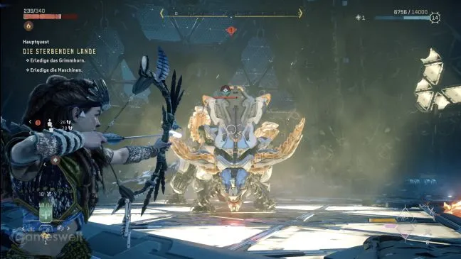 В результате сканирования вы узнаете, что слабыми местами Гриммхёрнера являются лед и кислота. Вам также будут показаны контрольные точки животного. Постарайтесь поразить гримхорна кислотной стрелой или гасящей водой на его больших передних клыках. Это отнимает много энергии и увеличивает вероятность элементарной реакции при каждом дополнительном попадании.