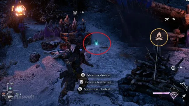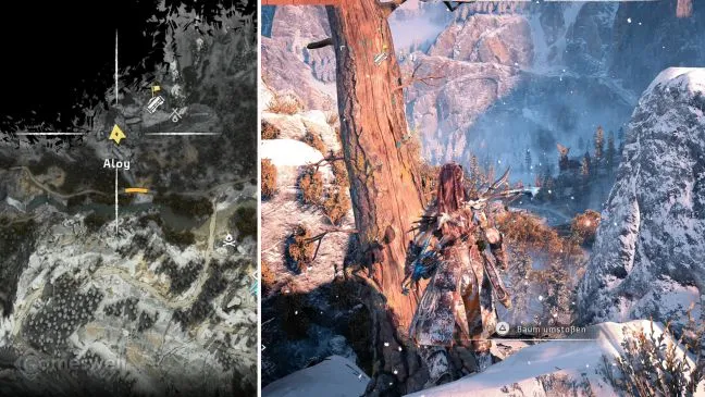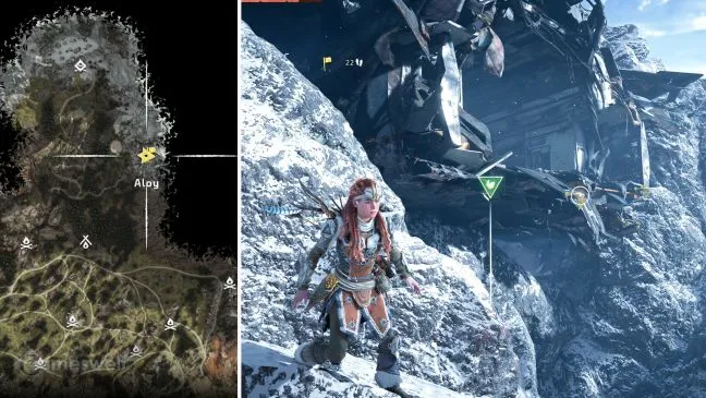 До бортового самописца в расщелине с костяным покровом, расположенной далеко на северо-западе в заснеженном горном массиве, добраться не так просто, как до остальных. К нему нужно подойти с запада и найти дерево на скале, которое можно сбить.