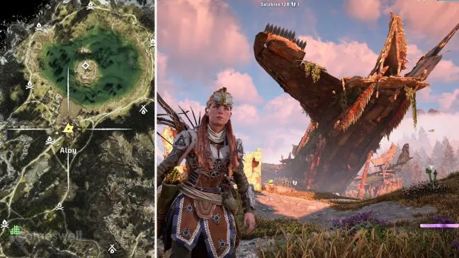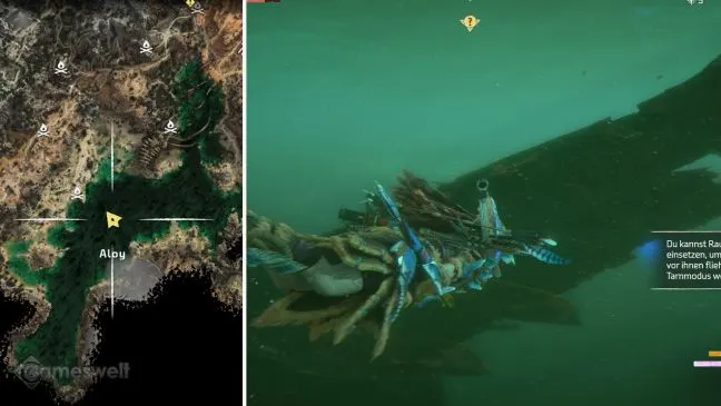 Сам по себе самолет легко проникнуть внутрь, поскольку большой люк в загрузочную зону в задней части открыт. Проблема скорее в том, чтобы забраться на скалу, на которой покоится самолет. Осталось найти подходящее место. К югу от моста находится перекресток. Поверните там направо и сразу же попадите в первые кусты на севере. Если вы свернете за них, то обнаружите еще один обломок самолета и более плоскую скалу, на которую можно забраться.
