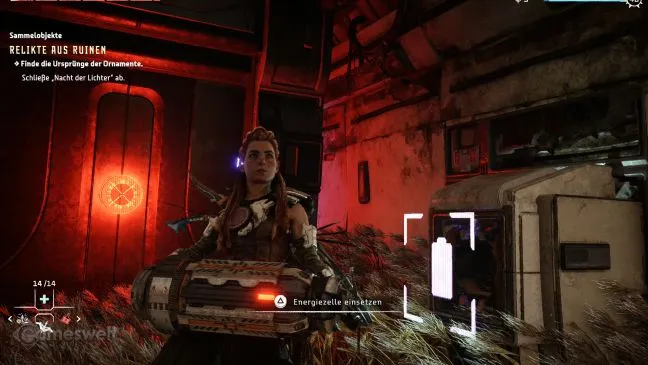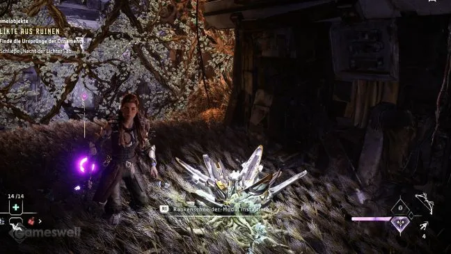 Отнесите энергетический элемент к фюзеляжу разбитого самолета и поместите его в контейнер рядом с запертой дверью. Теперь вы можете открыть дверь. Однако дальше к бортовому самописцу пробраться не удастся, так как доступ к нему преграждают усики. Когда Вы найдете резак усиков, Вы можете ударить копьем по цветку усиков, а затем утопить его кнопкой R1. В результате усики станут светлее.