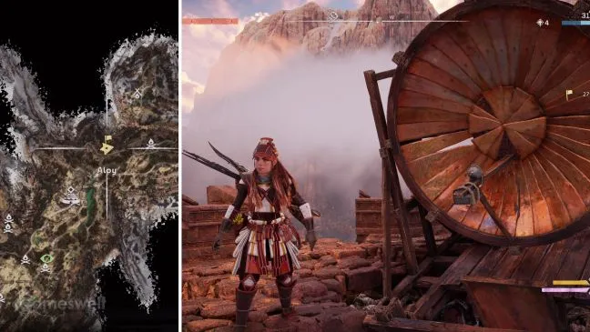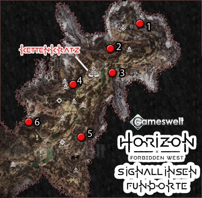 Недалеко от первой линзы можно найти еще одну. К северо-востоку от города Кеттенкрац находится еще одна древняя башня. Если подойти к ней с юго-востока, то можно найти деревянный пандус, подняться по нему, а затем карабкаться по неровным скалам. Желтые варианты лазания ведут вокруг башни. Если спуститься дальше в руины и порыться, то в сундуке с припасами можно найти сокровища.