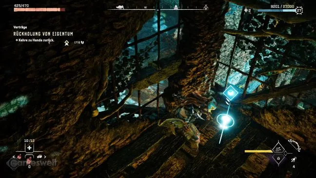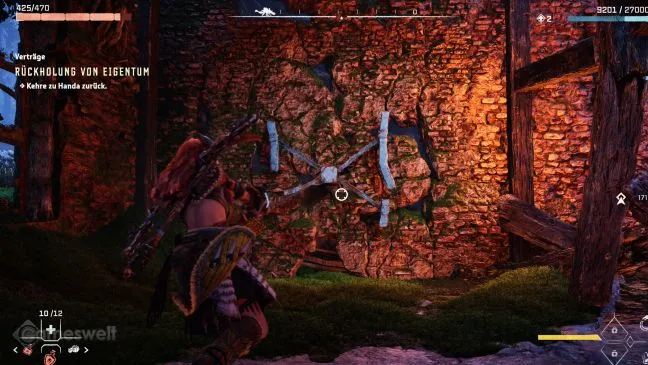 Модуль ключа позволяет открыть единственную запертую дверь на этом участке. За ней находится отдельная комната с сундуком с припасами, который можно разграбить. На юго-западной стене вы также найдете еще один металлический зажим. Оттяните его с помощью грейферного крюка, чтобы стена рухнула и открыла проход.