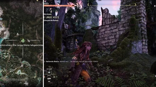 Вы найдете эту руину в густом темном лесу недалеко от побережья на западе главного континента, рядом с небольшим участком пляжа. Она окружена болотистой водой, но глубина ее не превышает колена Алой.