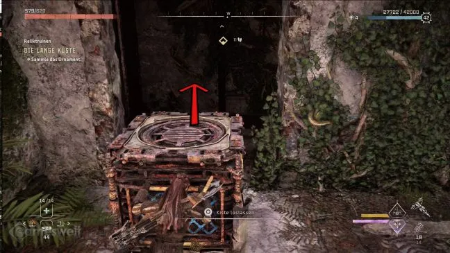 Теперь задвиньте ящик в лифт. С его помощью вы уже сможете добраться до люка лифта, но одного этого ящика недостаточно, чтобы добраться до реликвии. Даже если поднять лифт на один этаж. Нужен еще один ящик.