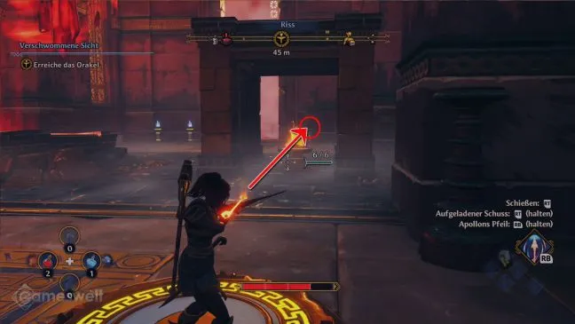 Если вы продолжите идти, то дойдете еще до нескольких заданий, в которых нужно будет поднимать предметы. На полпути к концу вы дойдете до небольшого алтаря, на котором лежит лук Улисса. Это важный инструмент с двумя разными типами стрел. Одна стрела, которой вы стреляете напрямую, и одна, которой можно управлять в полете. Вторая называется стрелой Аполлона.
