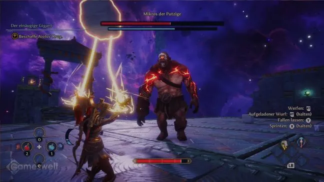 Несмотря на то, что Mikros не такой большой, как обычный циклоп, он ведет себя так же, как и его большие родственники, и с ним можно сражаться аналогичным образом. Первый урок, который преподаст вам этот босс, - невозможность парировать некоторые варианты атак. Следите за атаками, при которых рука циклопа светится красным. Это его неблокируемые атаки. Единственное, что может помочь, - это уклонение. Лучше всего уклоняться идеально, т.е. с правильным моментом, чтобы включилась короткая замедленная серия. Это специальное действие дает вам больше времени для прямых атак.