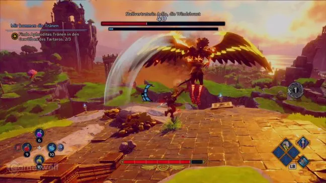 Ближний бой становится критическим только тогда, когда большая птица зажигает вертикальное кольцо света. Это сильно истощает жизненные силы Феникса. К счастью, этот прием используется нечасто, и его можно избежать. Когда кольцо света расширяется по вертикали, вы можете спастись, уклонившись в сторону. Но для этого придется преодолеть несколько метров.