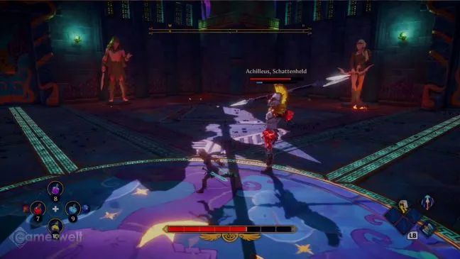 В начале этого боя обязательно возьмите зелье защиты и зелье атаки. Как и в первом бою, вам будет сложно использовать длинные комбо, так как Ахиллеус двигается быстро и имеет большой радиус действия. Он уязвим к ударам топора (полоска оглушения быстро растет, когда вы бьете по нему), но Феникс настолько медлителен с топором, что вы будете подавать себя легендарному герою на блюдечке с голубой каемочкой.