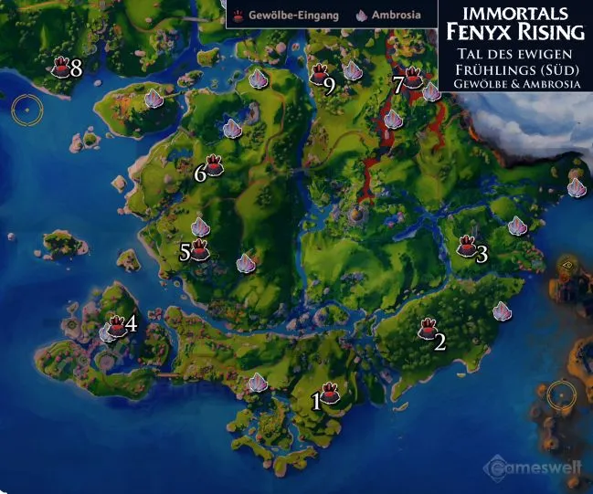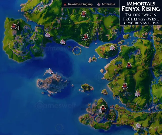 В этой главе мы перечислим все хранилища Тартара и все локации Амброзии в Долине Вечной Весны. Поскольку территория слишком велика, чтобы охватить ее на одном скриншоте, мы разделили ее на несколько подзон.