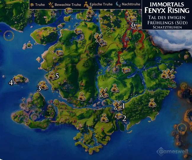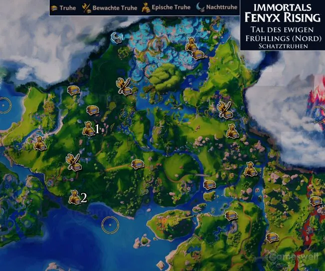 Мы также разделили Долину Вечной Весны на три подзоны для сундуков с сокровищами. Иначе все становится слишком запутанным. Мы показываем все сундуки на наших картах, но не рассказываем подробно о каждом из них в письменном виде, поскольку многие из них просто стоят рядом и не требуют никаких особых действий.