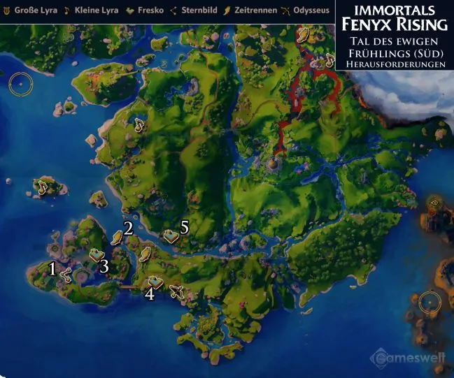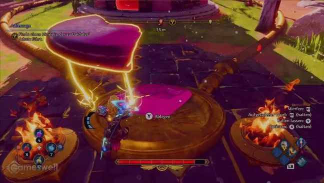1) Созвездие. Все шары созвездия, которые вы ищете, находятся в непосредственной близости, спрятанные в больших раковинах. Например, посмотрите на восток от гнезд в храме на столбах, где сортируются головки салата. Еще один шар можно найти к северу от гнезд возле кранов, если зажечь факел со стрелой. Третья сфера находится к югу от гнезд. Пройдите по извилистой тропинке и победите врагов на пути. В камере впереди находится снаряд. Справа от нее источник ветра поднимет вас к другой раковине. Там нужно за определенное время поразить мишени на краю платформы. Переключите переключатель, чтобы запустить отсчет времени.