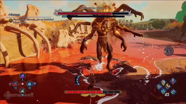 Не отходите слишком далеко от красного озера, иначе бой начнется заново - и Бриарей получит обратно всю свою жизненную силу. Однако камни, которые вы могли бросить в него, исчезнут.