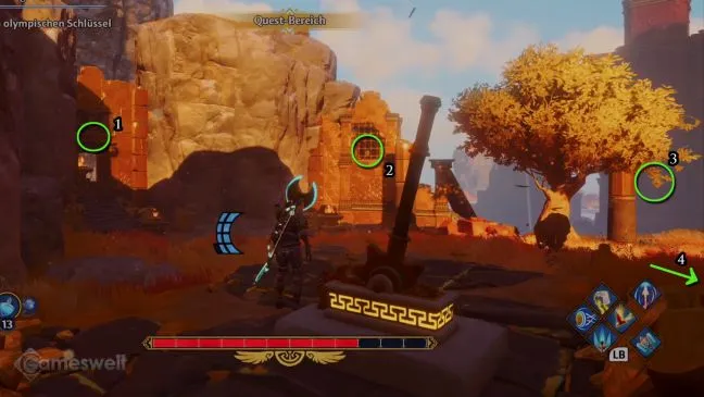 Прежде чем перейти к следующей области, Гефестос даст Фениксу несколько специальных заданий. Их обязательно нужно выполнить. В двух параллельных заданиях вы будете искать Олимпийский ключ, который, по преданию, спрятан в святилище. С его помощью вы сможете спасти Надежду из тайной камеры.