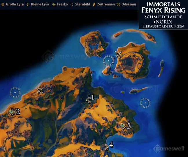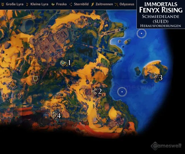 Мы показываем на наших картах расположение всех божественных задач, но обсуждаются только те из них, где вам придется приложить больше усилий или найти сложные решения. Мы разбили территорию на несколько частей, чтобы сохранить обзор, поэтому некоторые символы могут встречаться дважды.
