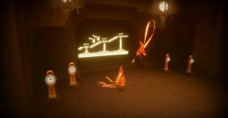 Достижение: Трансцендентность. Найти все светящиеся символы в одном или всех уровнях игры. Количество собранных символов указывается на столбиках у треугольного идола в каждом уровне. Если следовать указаниям выше, то мы соберем все 21 светящийся символ и получим белый плащ, с помощью которого можно летать и прыгать безостановочно.