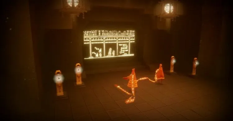 Возвращаемся назад и летим прямо к башне. На этом этаже мы находим последний светящийся символ (21). Ждём тряпичного дракона, запрыгиваем на него и добираемся до световой картины, чтобы посмотреть на нее.