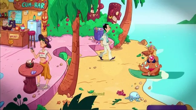После разговора с Пи пройдите налево и возьмите кучу (у Веры?). Вы также можете использовать лозу, чтобы смело перемахнуть через пропасть. Осмотрите место, где Ларри обнаружит выгравированную букву G. В остальном можно только углубиться в джунгли и, к своему удивлению, наткнуться на гостиницу.