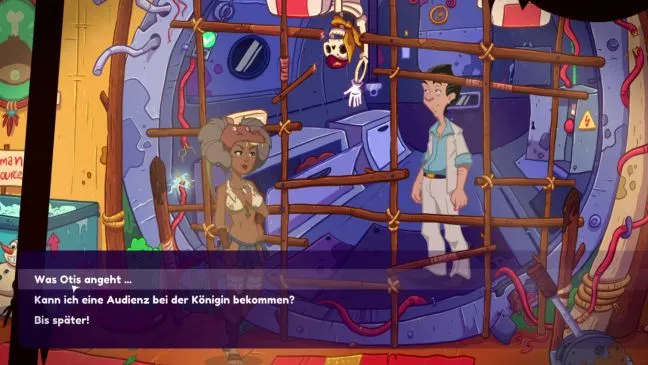 Далее необходимо снова поговорить с Отисом: если он все еще развлекается с Венди, то с помощью навигационного приложения снова поезжайте на остров Маффингтон, и добрый человек должен стоять перед своей хижиной у входа в деревню. Немедленно заговорите с ним о матроне, после чего он притворится ее племянником. Ну, если это не совпадение: Вам нужно что-то взять с тела потомка, но у Вас нет подходящих инструментов, чтобы буквально отрезать что-то от Отиса.