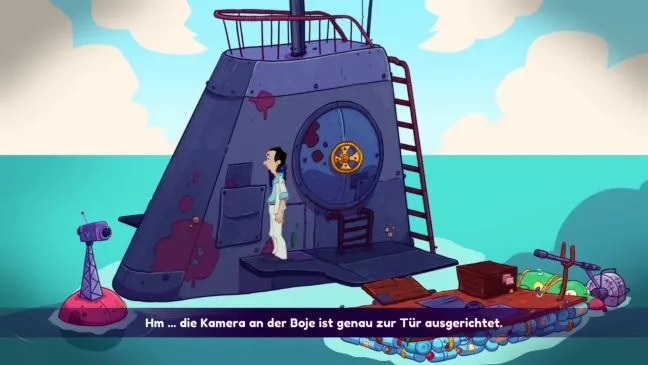 Немедленно откройте сейф и возьмите камень-ключ. Ларри автоматически направляется к лестнице и хочет взобраться на нее, но тут его ловит Янмай. Однако на этот раз она не убивает его, а просит подождать еще немного. На этот раз можно рискнуть и получить в награду еще одно видео Instacrap. После этого Ларри все равно покинет подводную лодку.