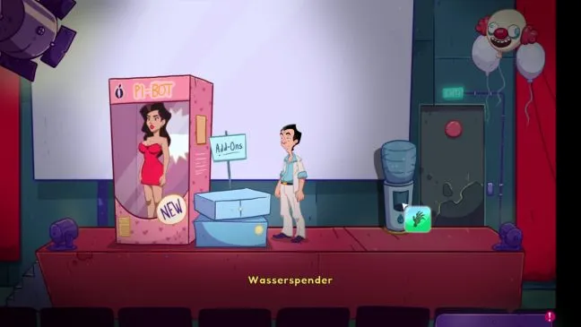 Теперь вы можете войти в комнату, где был представлен ПиБот. Рядом с дверью вы сразу заметите автомат с водой, с помощью которого можно превратить уменьшившуюся руку Ванга в политую. Также возьмите набор язычков, расположенный в крайнем левом углу.