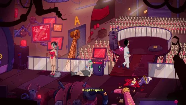 Вместо этого найдите овальный лифт, которым можно воспользоваться благодаря карточке доступа Ванга. Приземлившись в его кабинете, Вы должны сначала нажать красную кнопку в крайнем левом углу. На заднем плане загорается широкий монитор, на который обязательно нужно взглянуть. Согласно этим данным, Ванг уже планирует улучшенную версию бота и выдвинул четыре предложения, чтобы сделать его более привлекательным:
