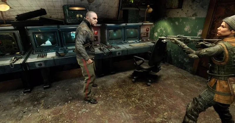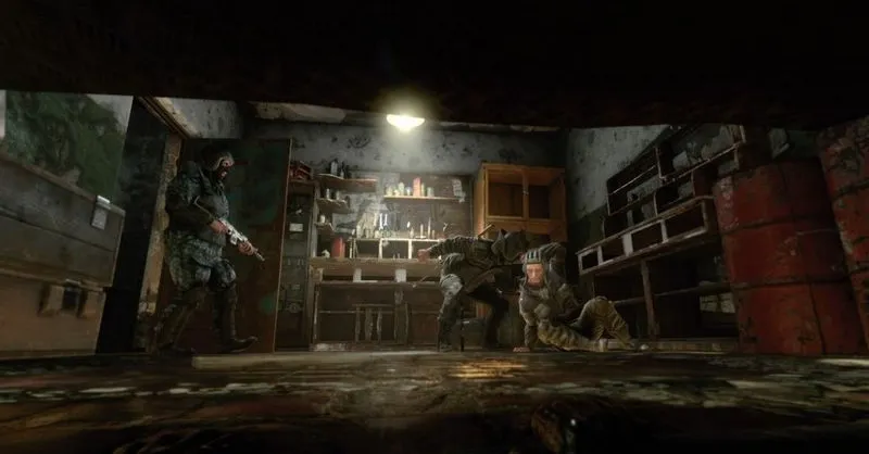 Присоединитесь к своей жене и помогите ей очистить соседнюю комнату от врагов. Если теперь вы взаимодействуете с консолью, чтобы переместить поворотный стол, враги появятся прямо впереди на проходе. Укройтесь за столом, только что опрокинутым Анной, или слева от консоли, у каменного прохода. Если хотите, вы можете разграбить шкафчики и трупы, чтобы пополнить свои запасы. Теперь уничтожьте врагов.