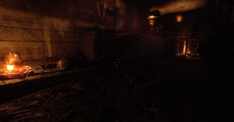 Следуйте по трубе и ждите у ее конца, пока охранник не уйдет. Как всегда, не забудьте погасить свет в непосредственной близости, чтобы Артём мог продвигаться под покровом темноты. Игнорируйте охранника у костра, так как приближение к нему разбудит его, и, по крайней мере, во время нашей попытки, это немного глючит, чтобы уничтожить его бесшумно. Прокрадитесь по лестнице рядом с ним и пройдите за спину следующего охранника. Сейчас вы приближаетесь к собачьим питомникам.