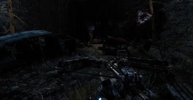 Положитесь на свою надежную зажигалку и следуйте по лестнице вверх. Оказавшись на вершине, зажгите факел, чтобы увидеть паукообразных врагов, атакующих вас здесь. Один меткий выстрел в то, что эти существа называют своим лицом, и они уже в прошлом. Через каждые несколько метров вы будете находить факелы, которые Артём должен зажечь, чтобы увидеть что-то внизу. Вам нужно только подойти с зажигалкой, и у вас будет небольшой, но постоянный источник света в этом месте.