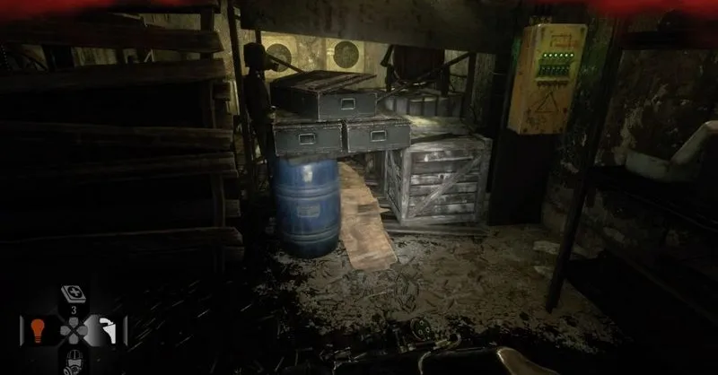 После кухни находится холодильная камера, а сразу за ней – небольшой склад, где можно найти предметы для ремесел и блок предохранителей. Рядом с указанным ящиком под ящиками и досками ведет небольшой проход. В секретной зоне за ним вы найдете эту записку.