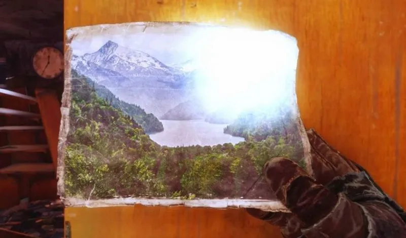Последнюю открытку можно собрать в этом районе, а точнее в главе «Волга», в самом конце. В этот момент вы попадаете в деревню с мостом, куда отступили фанатики. Идите в зону приготовления пищи, где много куч дерева. Рядом с камином на деревянной стене висит эта открытка.