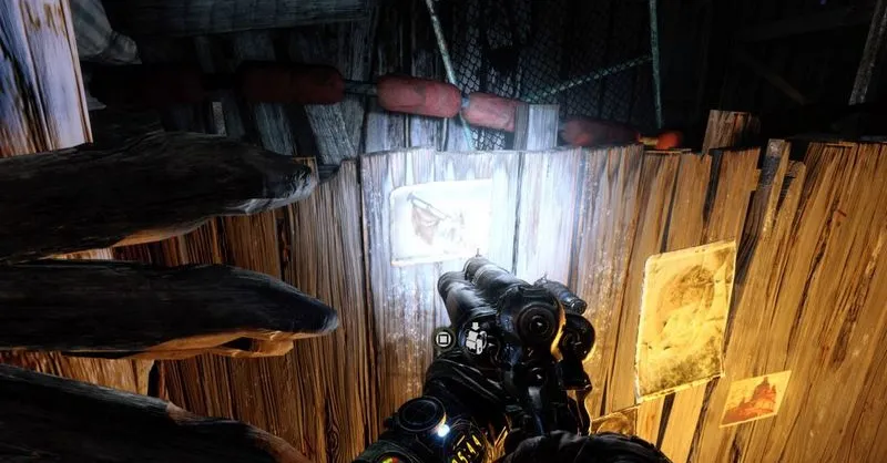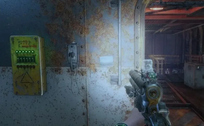 Первую открытку в игре можно найти после того, как Артём очнётся в лазарете и захочет встретиться с Анной и Миллером. Выйдите из зоны для пациентов и поверните направо к зеленой двери. В маленькой прихожей, справа от шкафчика, висит открытка и ждет, когда вы ее возьмете.