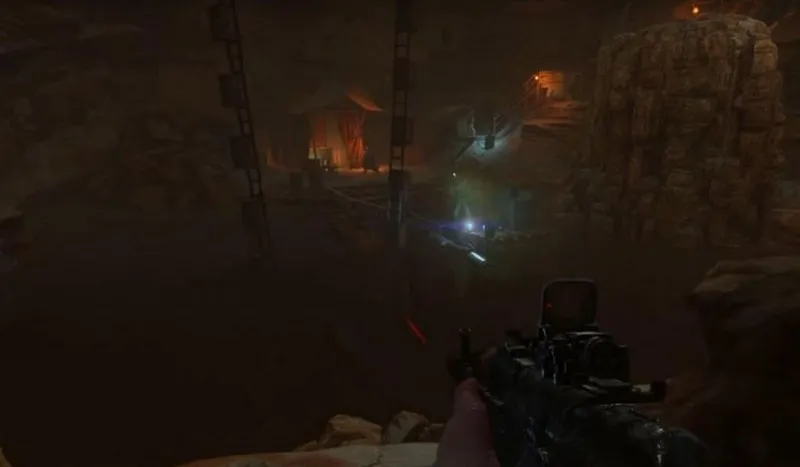 Когда Артём и Дамир собираются войти в оазис, вы должны найти путь на поверхность внутри пещеры, где будет похищена вода. В этой пещере есть ковшовый подъемник, который можно использовать, чтобы сократить путь. Победите ближайших охранников, чтобы вас не заметили, а затем подойдите к конструкции у кромки воды. Вам будет предоставлена возможность взаимодействовать с лифтом.