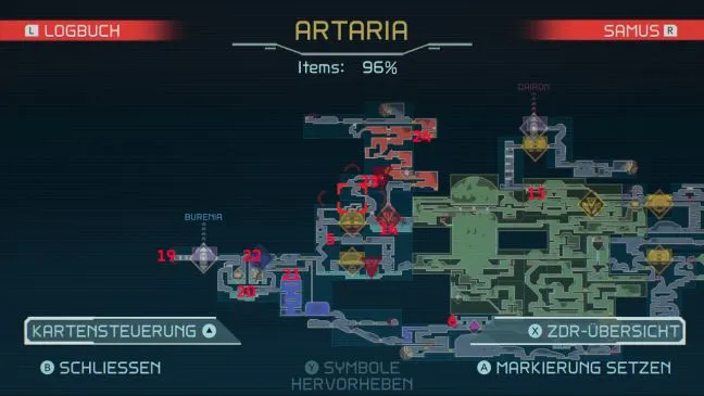 Из лифта, ведущего в Бурену, необходимо сначала уничтожить [Beam Blocks], а затем две стены [Screw Attack Blocks].