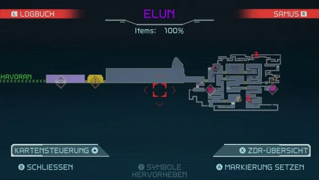 В комнате единственного в Элуне [Energy Tank] находится система шахт. Прыгните в нее с помощью [Винтовой атаки] в правом верхнем углу. Следуйте по пути, усеянному [Бомбовыми блоками]. Воспользуйтесь [Импульсным радаром]. В области в правой части экрана, где вы могли видеть предмет, уничтожьте блоки слева и проскочите через [Блоки-ловушки]. Следуйте по системе шахт вверх, установив [Power Bomb]. Теперь вы можете добраться до ракетного контейнера.