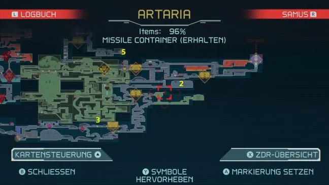 Здесь указаны местоположения всех способностей, которые можно получить с помощью шариков с предметами, кубиков с предметами, побед над E.M.M.I. или боссами. Сопоставьте номера с картой. Номера не обязательно соответствуют порядку их нахождения.