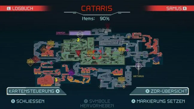 Здесь указаны местоположения всех способностей, которые можно получить с помощью шариков с предметами, кубиков с предметами, побед над E.M.M.I. или боссами. Сопоставьте номера с картой. Номера не обязательно соответствуют порядку их нахождения.