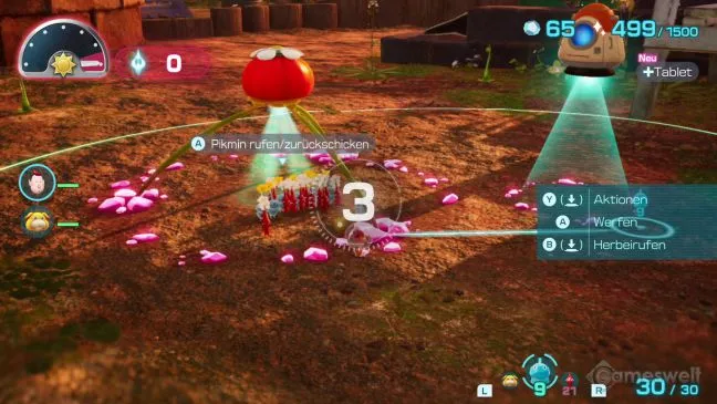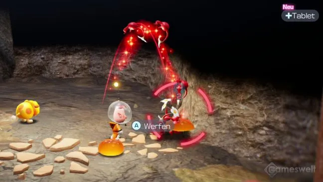 Но теперь продолжим: внимательно осмотритесь вокруг. Под кустом вы найдете тюбик с кремом (Refreshing Grease), который можно забрать. Также посмотрите за глиняными горшками на северо-западе возвышенности. За ними находится луковица. Этот лук светлого цвета представляет собой так называемую луковицу чеснока и увеличит количество ваших пикминов, когда вы снова окажетесь на поверхности. Это означает, что если вы перенесете его и трансформируете, то сможете одновременно управлять еще большим количеством Pikmin в верхнем мире. Взгляните на нашу карту - на ней показано, где какие предметы можно найти.