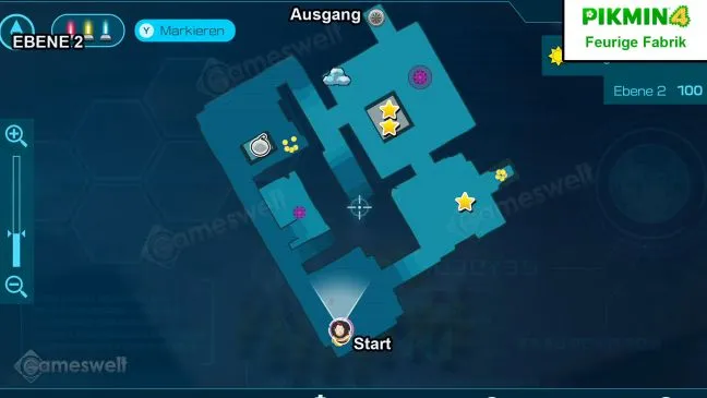 Поэтому убедитесь, что вы используете правильные Пикмины. Не только на врагов, но и на раскаленные поверхности. Только красные Пикмины могут выжить после падения на лавовые плиты, и только красные Пикмины могут уничтожить маленькие светящиеся цилиндры в их центре, чтобы раскаленные плиты остыли.
