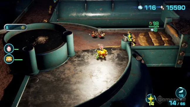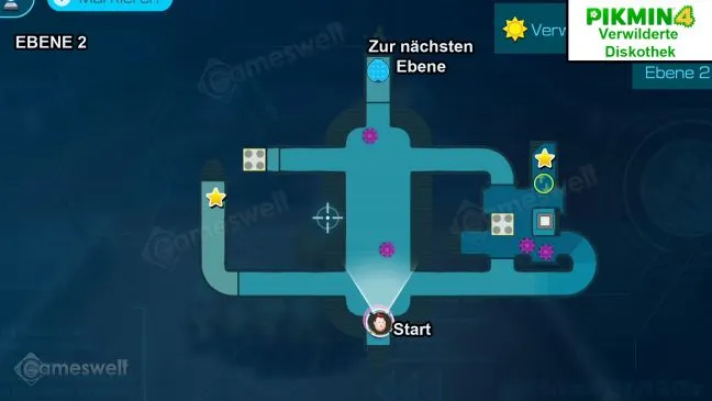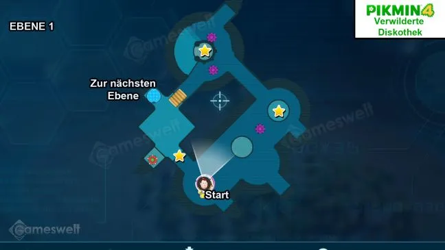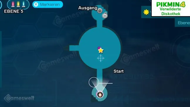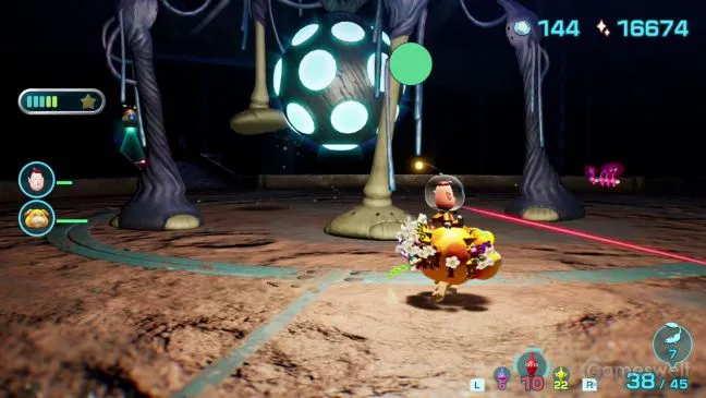 Босс в центре арены представляет собой большой дискотечный шар, стоящий на длинных ходулях. Поскольку уязвим только шар, с красными пикминами далеко не уйдешь. Вам понадобятся желтые Пикмины и летающие розовые Пикмины.