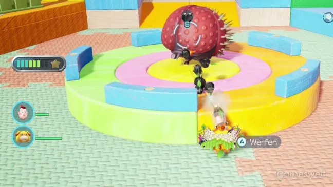 Этот босс не является для вас незнакомцем, поскольку вы уже сталкивались с ним. Но никогда - на такой узкой платформе, где нет возможности разбросать своих пикминов. Приходится оставаться за пределами платформы, и поэтому он практически беззащитен перед атаками шипов. Но есть эффективная стратегия.