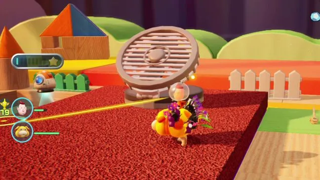Решение довольно простое: залезьте на своего верного пса и позвольте себе перенестись на второй вентилятор с помощью первого вентилятора. Теперь просто бросьте несколько Пикминов на красно-коричневый пол рядом с неработающим вентилятором.