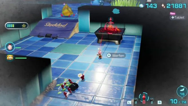 Именно поэтому элементы управления выбором четко различают Pikmin: красный Pikmin, несущий горящую сосновую шишку, может быть выбран отдельно при переключении между Pikmin, чтобы вы могли нацелиться на него.