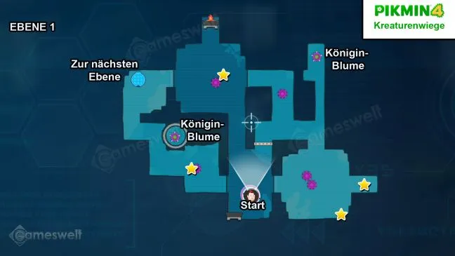 На втором уровне сначала нужно отправить Очина одного через туннель, так как есть только один другой разумный путь для Пикмина. Однако, поскольку он перекрыт решетками, взять Очина с собой невозможно, поэтому сначала нужно сделать то, что возможно с ним.
