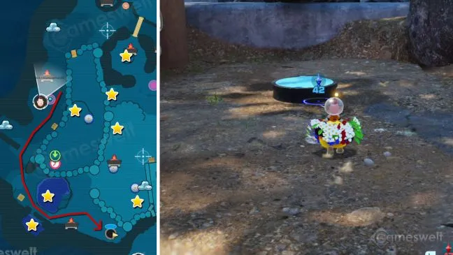 Вам нужно только сжечь эти связки, чтобы ваш Пикмин смог забрать сокровища. Но даже это на самом деле очевидно. Возьмите головоломку (фрагмент памяти внизу), красный фрукт (оранжерейный фрукт), мандарин (цитрусовый самородок) и 15 золотых самородков. Когда вы очистите все цветы-королевы, вы сможете покинуть уровень.
