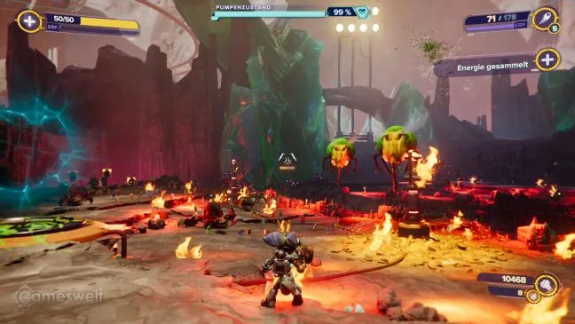 Внимание: Возможная ошибка. Несмотря на неоднократные попытки и многократное опробование сценариев, мы столкнулись с ошибкой, которая после установки первого патча проявляется реже, но все же не исключена. Бывает, что вражеская волна не завершается из-за того, что враги не двигаются вверх. В этом случае ничего не происходит, и приходится ждать до бесконечности. Однако для этой ошибки есть обходной путь. Если это произошло, подойдите к передней части лавового бассейна, откуда обычно выходят враги, и стреляйте вслепую в лаву. Если правильно разбросать выстрелы, то можно поймать последних врагов, которые по непонятной причине не выходят из лавы, и таким образом решить задачу.