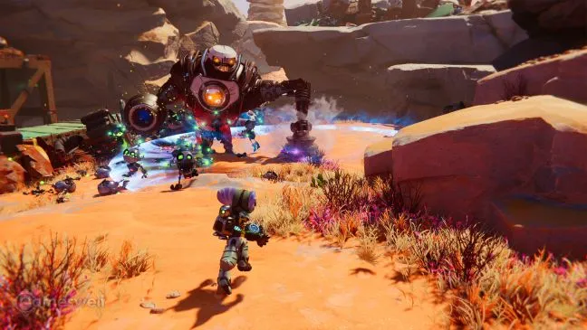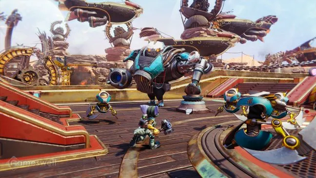После боя с Роджером нужно дать стрелкам слева от себя ускориться. Таким образом Вы получите немного раритана. Справа от стрелок ускорения на обрыве вы найдете следующий желтый крюк. Он доставит вас к фликеру после серии прыжков и короткого перемалывания. Включите его на рукоятке. Внушительных размеров робот проснется, но решит, что вы представляете угрозу. Начнется захватывающая оргия, в ходе которой вы сможете выбить раритан, если правильно выберете время. У вас есть только один шанс сделать это, потому что вернуться на это место вы уже не сможете. Финал побега драматичен: мерцание грозит раздавить Клепу, но Кланк спасает положение одним движением... Все обошлось, и мерцание восстановило фазовый кварц. Теперь можно вернуться на корабль и покинуть Торрен IV.