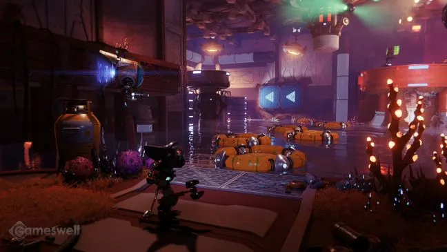 Работники императора, естественно, удивлены вашим внезапным появлением. Еще больше удивлен аналог Шротбота, который перехватывает вас в соседней комнате. Кит врет ему, что вы здесь по поручению императора. Здесь находится кузница Рубиона, которую вы ищете, что меняет ваше текущее задание на "Построить Измеритель". В это время возьмите бот SpyBot, который стоит где-то здесь, на небольшой платформе далеко над вами. Подняться туда можно с помощью желтого портала измерения. Затем запрыгните на батут с розовой подсветкой, чтобы добраться до пульта управления кузницей.