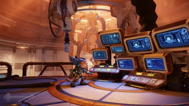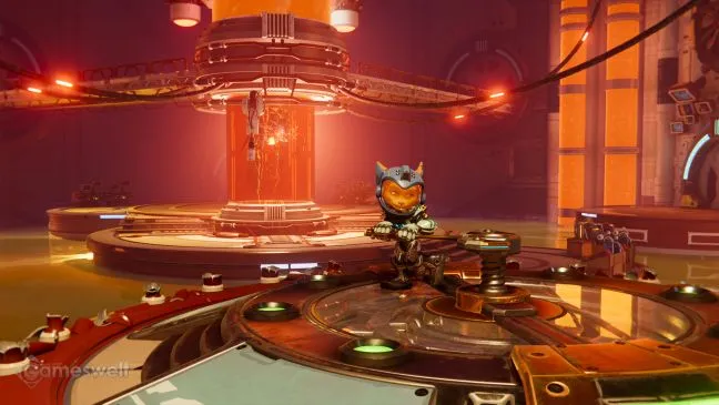 В следующей комнате вас уже поджидают роботы-охранники. Многие из них стреляют лучами. Воспользуйтесь пустым безоткатным оружием. Оно служит защитой от лучей (нажмите L2), но может и выстрелить, если нажать R2. Но только на расстоянии нескольких метров. Когда все охранники уничтожены, Рэтчет понимает, откуда берется энергия для завода: используется аналог Сафти из этого измерения. Рэтчет и Кит решают освободить Сафти. Для этого нужно повернуть кривошип, расположенный рядом с водой.