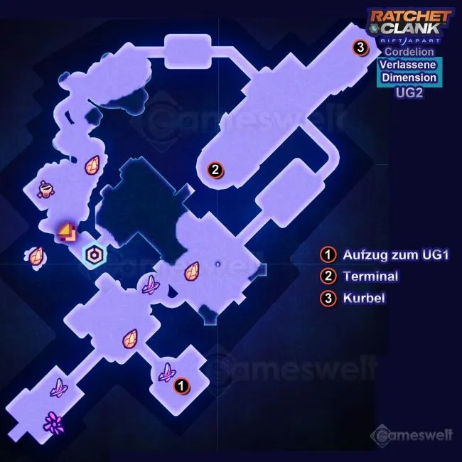 Рэтчет и Кит впервые используют Близон, но сразу же понимают, как он работает. В пустынном измерении холодно и одиноко. Скользите вниз по ледяным участкам и зацепите CraiggerBear за снежный холм внизу. В этом заброшенном измерении вы обнаружите действующий лифт, воспользуйтесь им, чтобы спуститься внутрь станции. Теперь вы находитесь в первом подвале (UG1) заброшенного измерения. Возьмите раритан здесь, в комнате. Затем бегите по коридорам, пока от вас не убежит один амебоид. Теперь посмотрите налево. Там находится дверь шлюза, которая не закрывается. Потянитесь к желтому пространственному порталу за ней, чтобы получить золотой болт. Если вы затем расстреляете взрывоопасные ящики, то взорвете неисправный шлюз и вернетесь в коридор. Теперь бегите дальше по коридорам и сражайтесь с амебоидами. Здесь перчатка смерти оправдывает себя. Следующая большая комната залита водой. Не успеете вы осмотреть ее, как вас застает врасплох нервный робот по имени Скрапбот. Он хочет помочь вам найти следующий Близон.